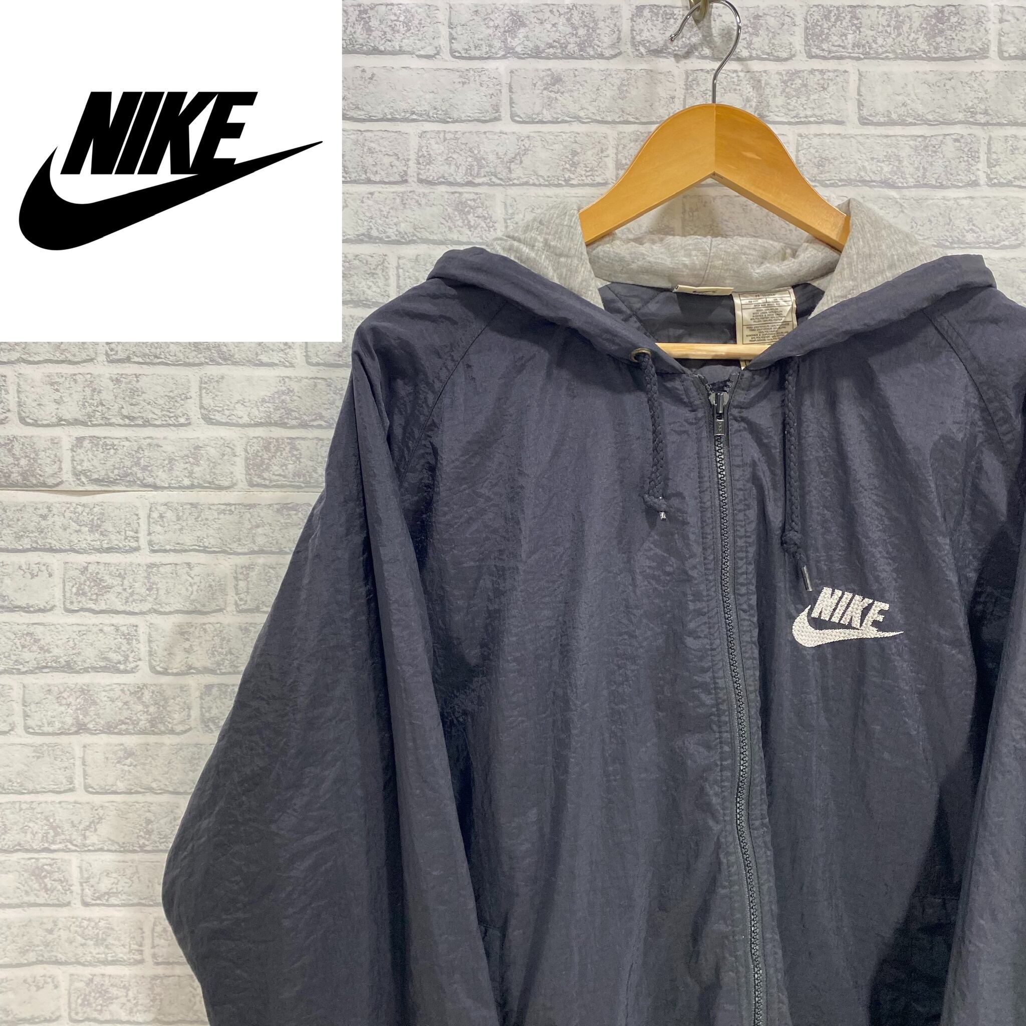 NIKE 90's 古着 ナイロンジャケット ビッグロゴ ワンポイントロゴ 黒
